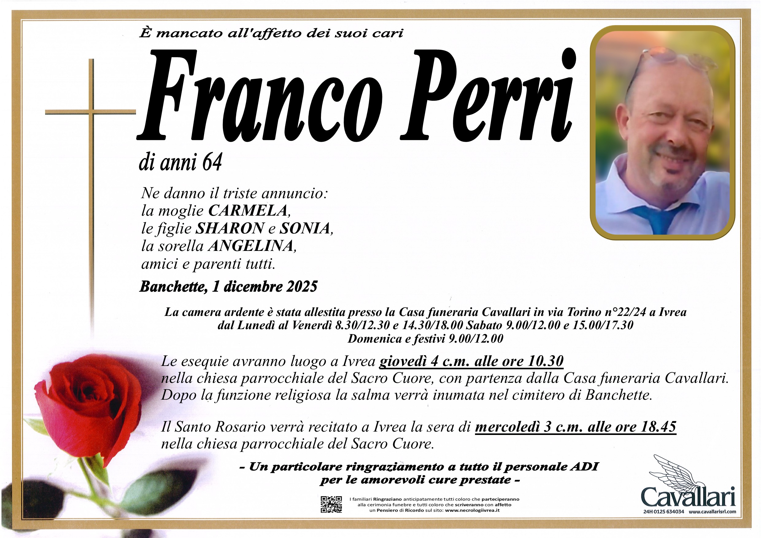 I familiari ringraziano anticipatamente tutti coloro che parteciperanno alla cerimonia funebre