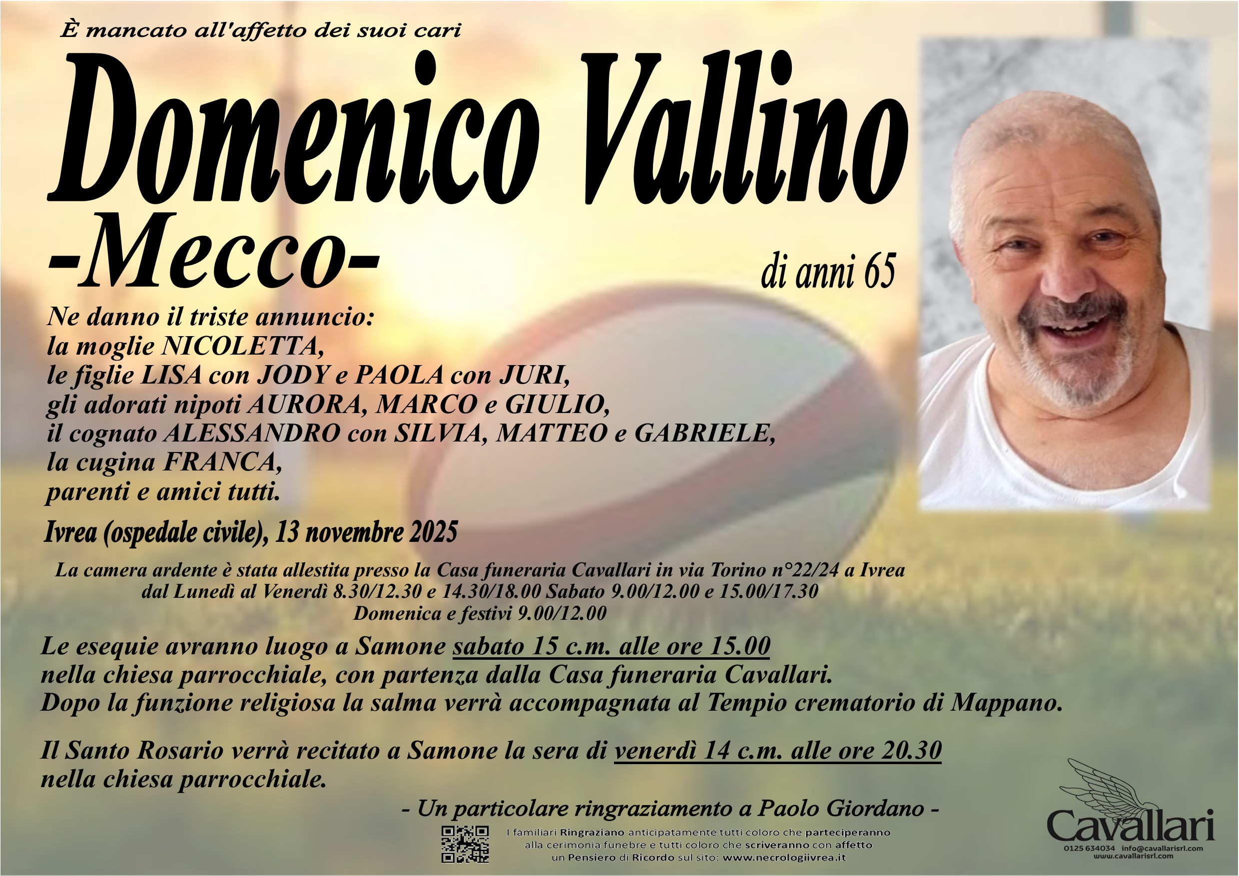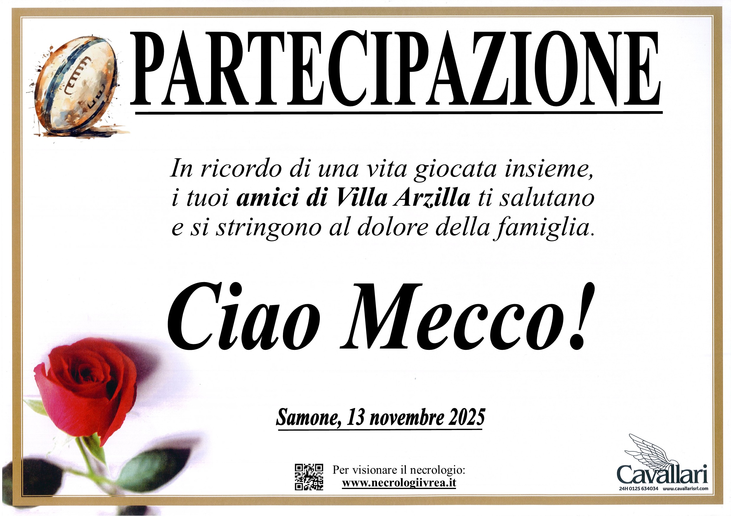 I familiari ringraziano anticipatamente tutti coloro che parteciperanno alla cerimonia funebre