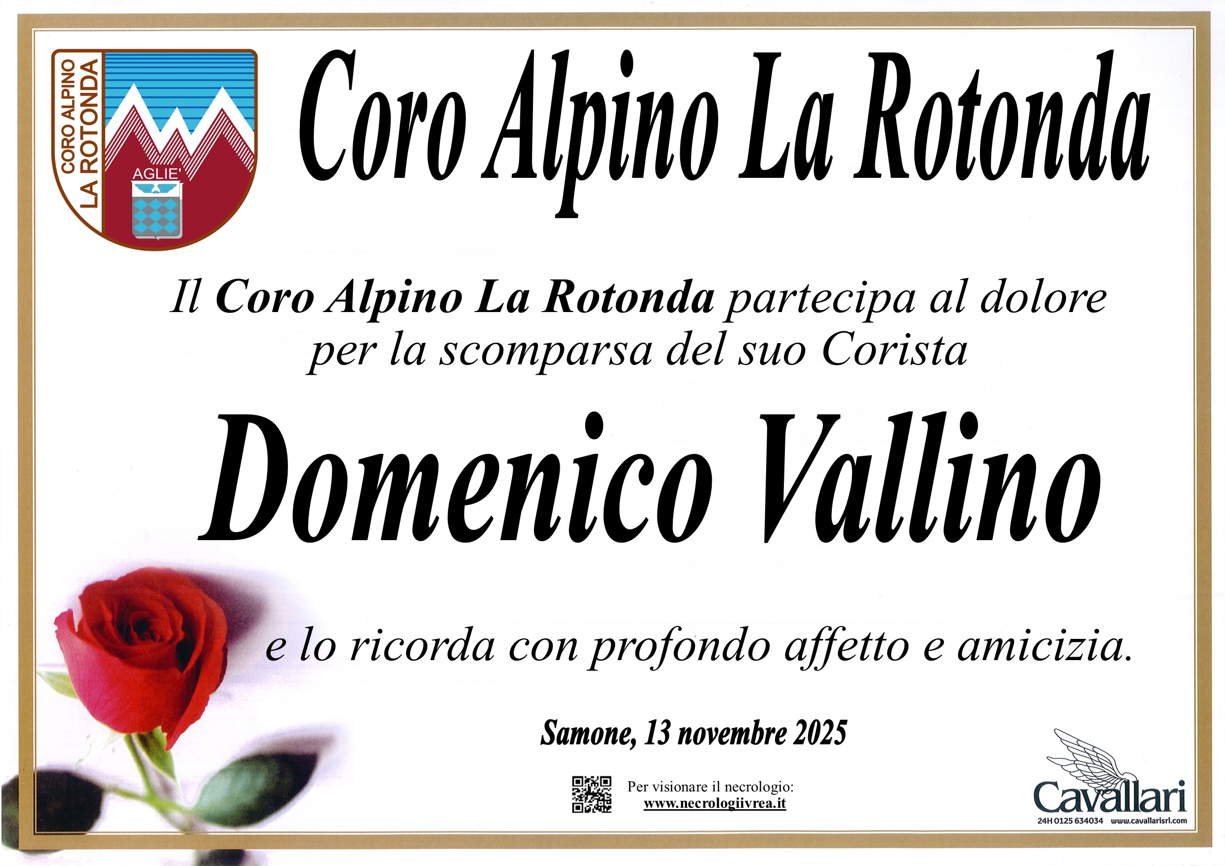 Ciao caro Meco, spero che troverai lassù un coro dove cantare come facevi con il tuo/nostro Coro Alpino La Rotonda. Ti ricorderemo sempre per la tua simpatia e per il tuo profondo legame con tutti noi. Grazie per il percorso di vita e amicizia che abbiamo fatto insieme. I Coristi e il Maestro del Coro Alpino La Rotonda.