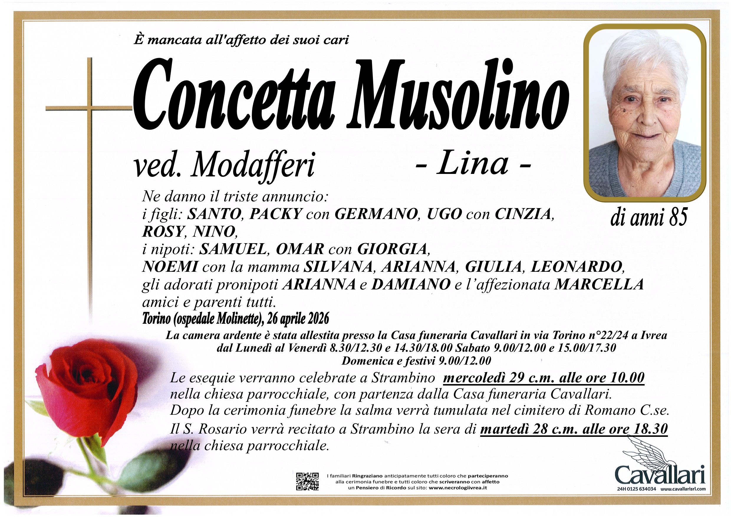 I familiari ringraziano anticipatamente tutti coloro che parteciperanno alla cerimonia funebre